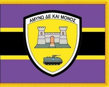 ΠΑΡΑΣΤΑΣΗ: Το Βυζαντινό κάστρο του Πυθίου και Τεθωρακισμένο Όχημα Μεταφοράς Προσωπικού. Συμβολίζει το χώρο που υπερασπίζεται η Ταξιαρχία και τη μηχανοκίνηση αυτής.