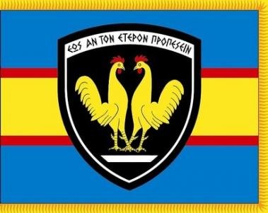 ΠΑΡΑΣΤΑΣΗ: Δύο αγωνιστές πετεινοί αλληλοσυγκρουόμενοι. Συμβολίζει την αποφασιστικότητα της Μεραρχίας να αγωνισθεί μέχρι τελικής πτώσεως του αντίπαλου, όπως ακριβώς πράττουν οι αγωνιστές πετεινοί.