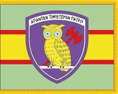 ΠΑΡΑΣΤΑΣΗ: Σύμπλεγμα κουκουβάγιας και διπλού πέλεκυ. Συμβολίζει τη μάθηση και τη γνώση (κουκουβάγια, σύμβολο των γραμμάτων και της σοφίας κατά την αρχαιότητα) καθώς και τη δύναμη – ισχύ (πέλεκυς, ως πολεμικό όπλο σύμβολο δύναμης του τιμωρού).
