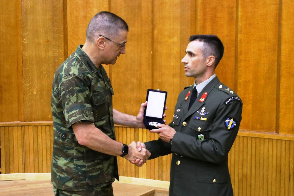 Infantry Colonel Stergios Anastasiadis and Infantry Major Ilias Karaiosif, who distinguished themselves at ultramarathons were awarded on Wednesday 30 May 2018 by the Chief of HAGS Lieutenant General Alkiviadis Stefanis.