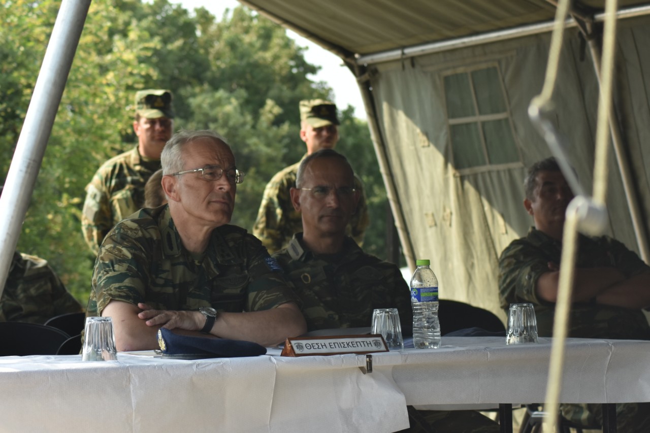 The Chief then visited the Training Ground in Kanapitsa, Litohoro, where the Hellenic Military Academy (Evelpidon) conducts its summer training, accompanied by the Academy Commandant, Major General Dimitrios Houpis. During his visit, he attended part of the annual three-day cadet training evaluation, which was redesigned to include innovative exercises designed to promote skills which will forge combat leaders capable of dealing with the challenges of the modern battlefield under great psychological pressure.