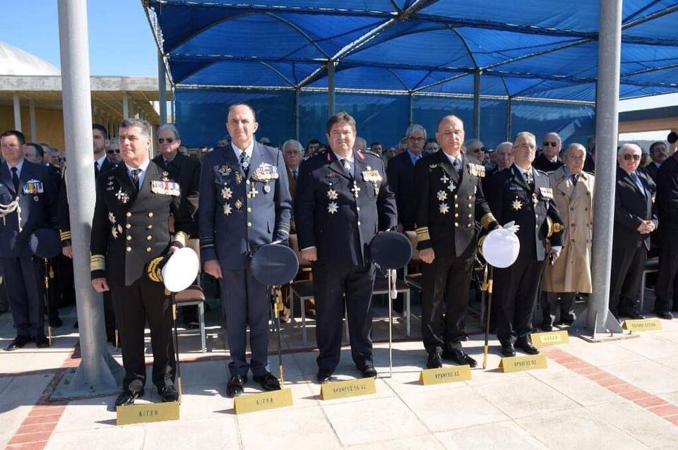 The ceremony was attended by the Minister of National Defence, Mr. Evangelos Apostolakis, the Alternate Minister of National Defence, Mr. Panagiotis Rigas, the Deputy Minister of Citizen Protection, Ms. Ekaterini Papakosta – Sidiropoulou, the Special Secretary of the Ministry of National Defence, Ms. Kalliopi Papaleonida, the Chief of Hellenic National Defence General Staff, General (HAF) Christos Christodoulou, the Chiefs of Hellenic Air Force and Navy General Staff, representatives of civilian and political authorities, representatives of foreign Chiefs of Defence, Honorary Chiefs and Senior and General Officers of the Armed Forces, delegations of personnel from all three Services of the Armed Forces and the Unions of Retired Officers, retired Officers, and other guests.