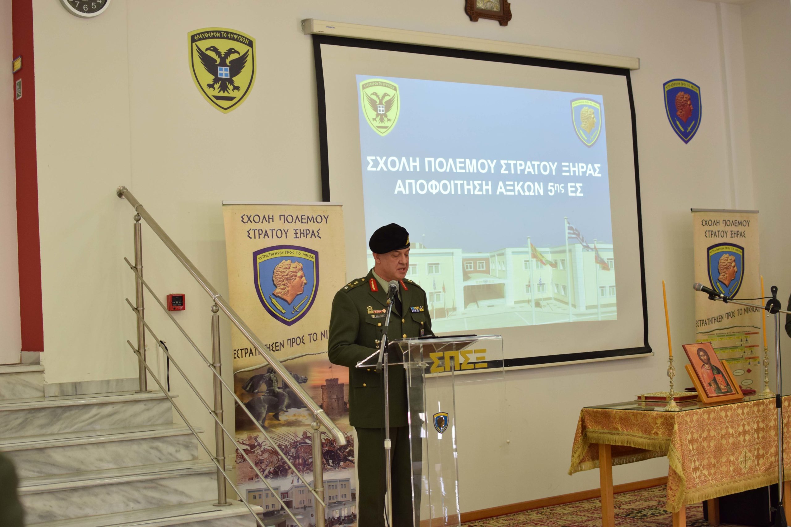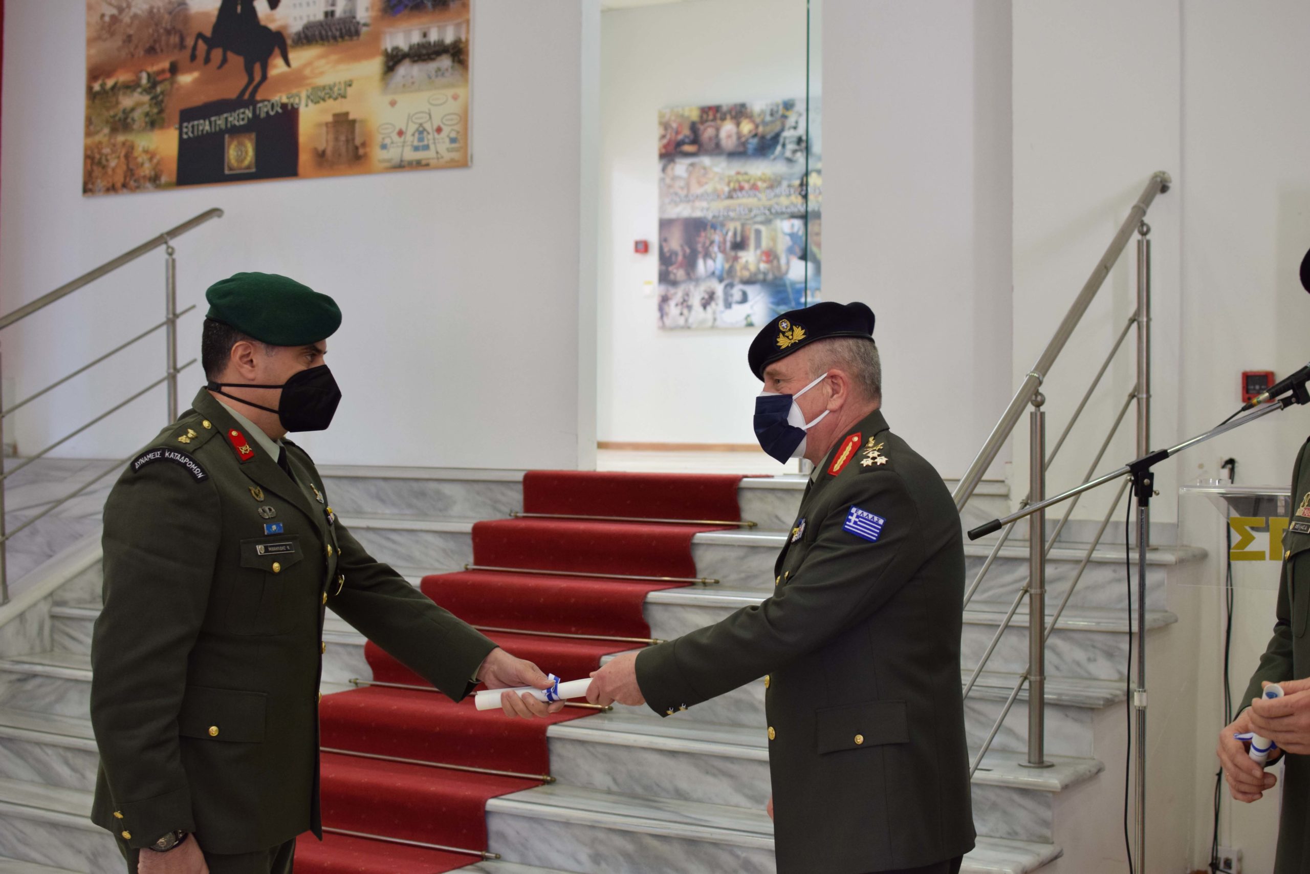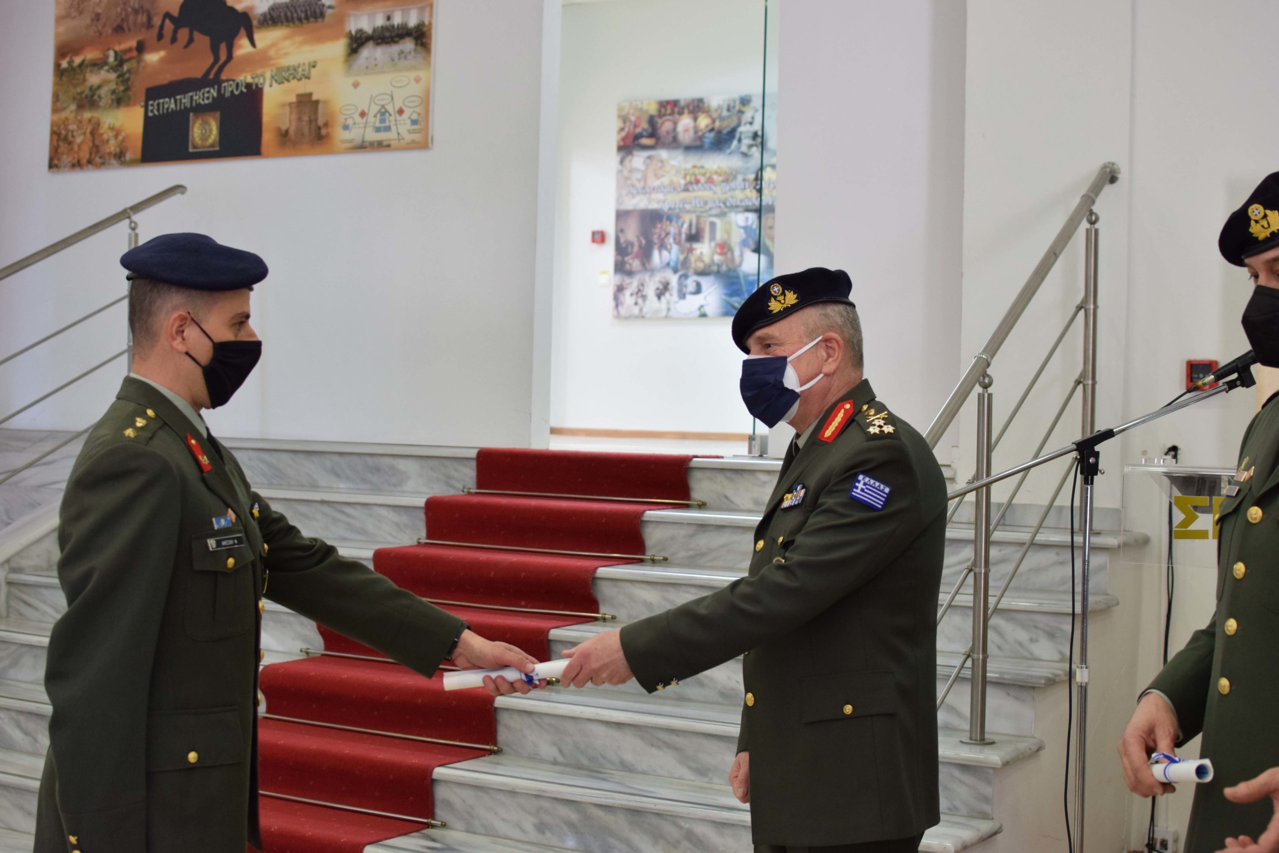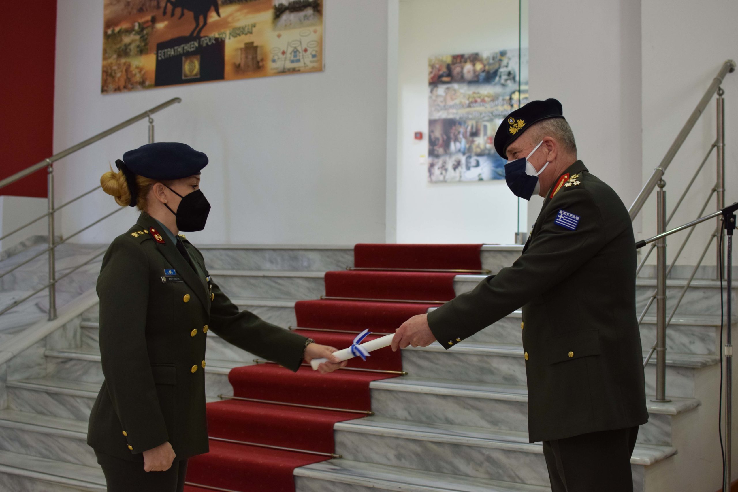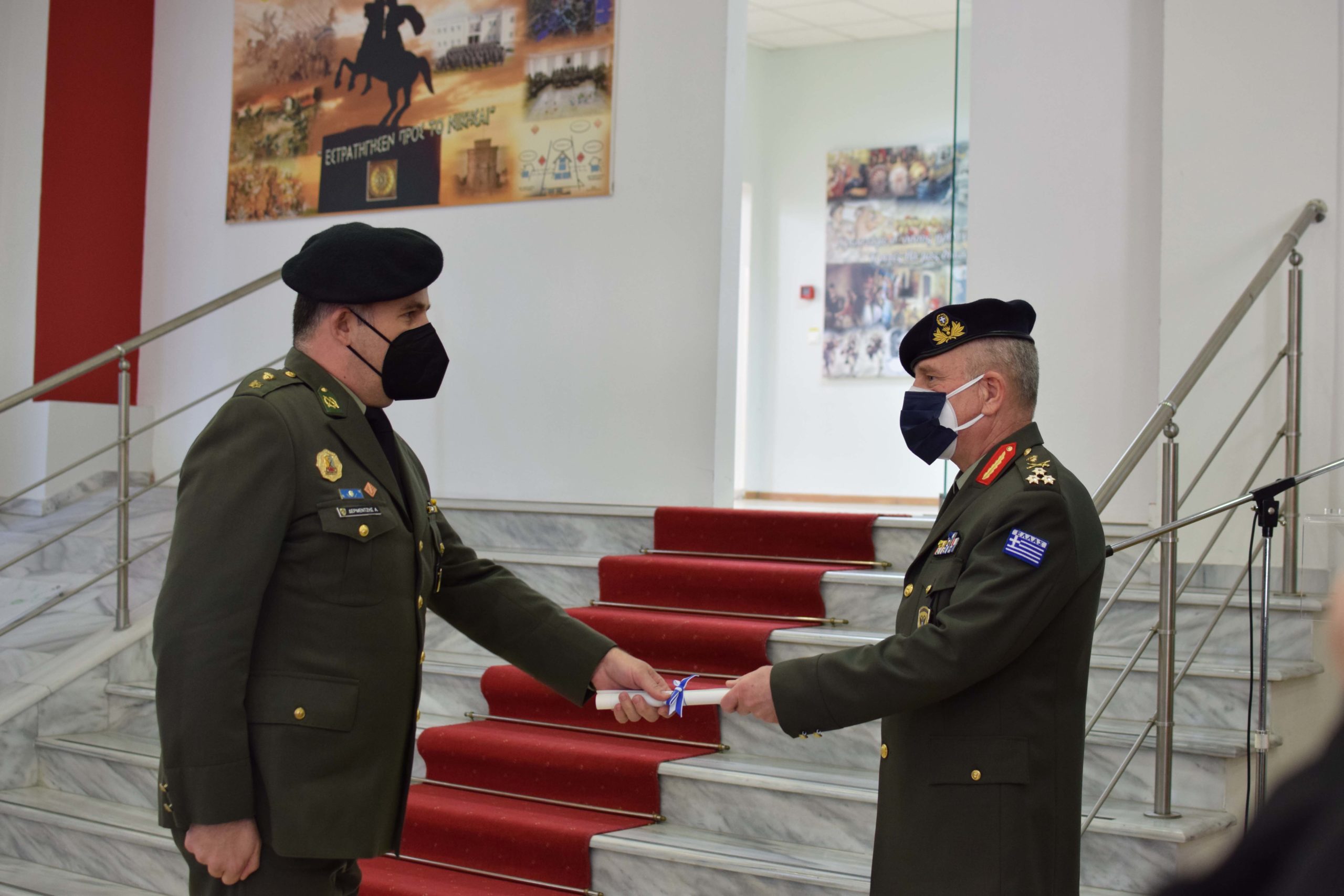 On Friday 4 February 2022, the graduation of the 5th Training Series of the Hellenic Army War College was held at the School’s premises in “CHIEFTAIN D. NTALIPIS” Camp in Thessaloniki. The degrees were awarded to graduates by the Hellenic Army Inspector General – Doctrine and Training Commander Lieutenant General Angelis Ilaridis.