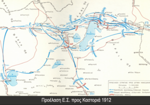 While the Hellenic Army was operating in the region of Western Macedonia during the First Balkan War, it liberated Kastoria on 11 November 1912. The Ottoman forces were constantly retreating and had already mustered in the region of Korytsa, leaving a great part of Western Macedonia uncovered.