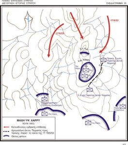 Σχεδιάγραμμα 3: Μάχη του Χάρρυ 17-18/6/53 ΓΕΣ/ΔΙΣ, Το Εκστρατευτικό Σώμα Ελλάδος εις Κορέαν (1950-1955), Αθήνα 1977,σχεδιάγραμμα 25.