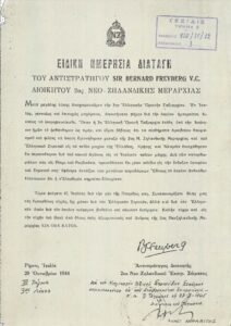 Ο Διοικητής της 2ης Νεοζηλανδικής Μεραρχίας Sir Berrnard Freyberg στην ειδική ημερησία Διαταγή της 20ής Οκτωβρίου 1944 ανέφερε μεταξύ άλλων: