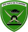 Το έμβλημα συνθέτουν οι χιαστί σπάθες με το πέταλο και το άρμα μάχης σε συνδυασμό με το επιγραφόμενο ηθικό κέλευσμα: