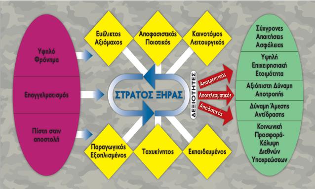 - Τα δόγματα είναι θεμελιώδεις αρχές, οι οποίες διέπουν τις ενέργειες των στρατιωτικών δυνάμεων ή τμημάτων τους, προς στήριξη Εθνικών Αντικειμενικών Σκοπών. Συνιστούν το κορυφαίο θεσμικό κείμενο και επ’ αυτών εδράζονται τα λοιπά κείμενα που διέπουν τις επιχειρησιακές λειτουργίες του ΣΞ.