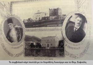 Το συμβολικό καρτ ποστάλ με το Λογοθέτη Λυκούργο και το Θεμ. Σοφούλη